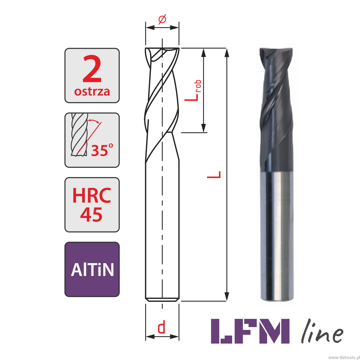 Frez węglikowy 2F - 18 mm (18x18x100x45) AlTiN