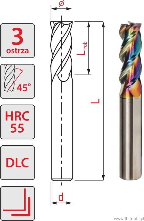 Frez węglikowy 3 F - 6 mm ALU DLC (6x6x50x18)