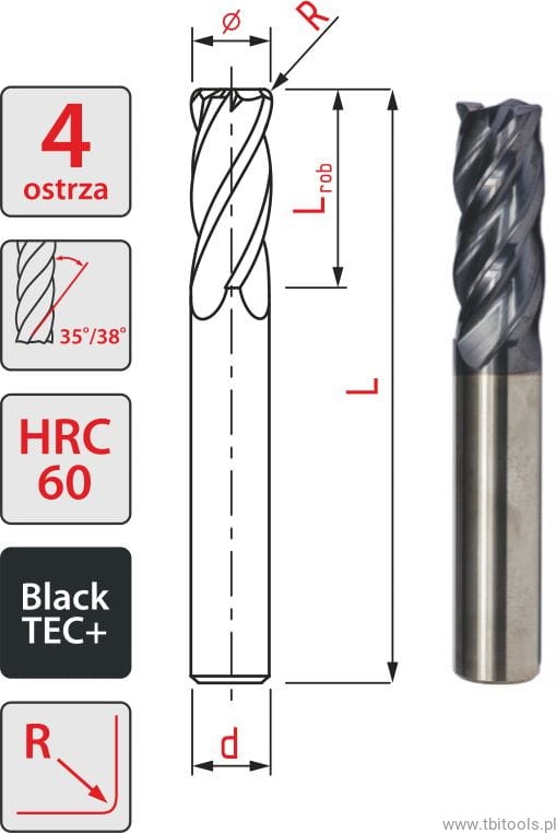 Frez węglikowy 4F - 6 mm R0.5 (6x50x15) BLACK TEC+