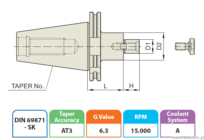 Oprawka posiada stożek narzędziowy typu SK40, który jest popularnym standardem używanym w obrabiarkach. Taper ten zapewnia pewne i dokładne dopasowanie oprawki do wrzeciona maszyny.