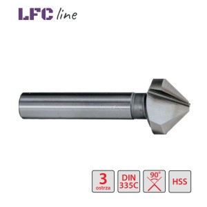 Pogłębiacz stożkowy Ø 25.0mm 90 stopni 3 ostrzowy, wykonany zgodnie ze standardami normy wymiarowej DIN 335 ze stali szybkotnącej HSS.